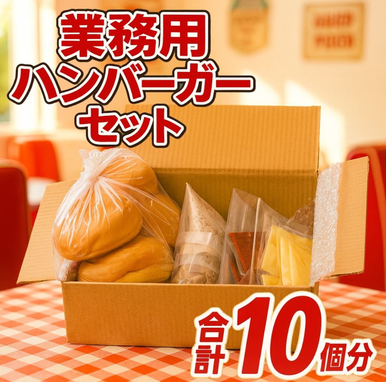 ふわふわ食感が大人気の「プレミアムバンズ」、肉の旨みが弾けるジューシーな「本格パティ」、甘く濃厚なトマトベースの「自家製オリジナルソース」――すべてを自社工房で丁寧に手作りした、こだわりのご当地バーガーを 業務用10個入りセット でご家庭や店舗にお届けします。
